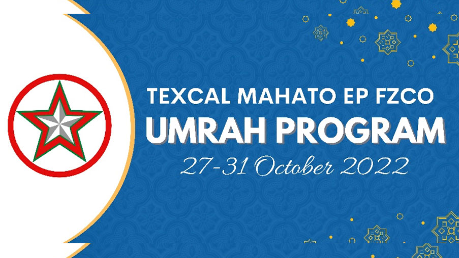 Alhamdulillah, Texcal Mahato EP FZCO by Pak Ibrahim Attereh has conducted an Umrah Program 2022 dated 27-31 October 2022 for 20 people (13 employees and 7 spouses), for employees and spouses so that they can worship in the holy land together. This Umrah Program 2022 is as an appreciation for employees of their performances also for those who have not experienced Umrah yet.