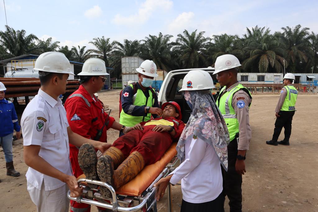 “All functions within the Company already have roles and responsibilities, so during this simulation, we are successfully re-sharpening each function responsibility and roles. These includes the alertness of on-site team when handling victims and coordination with the on-site paramedic, Puskesmas and Polsek, The flow process of coordination and communication is an important aspect to maintain the validity of the data which will be conveyed to all relevant stakeholders”.